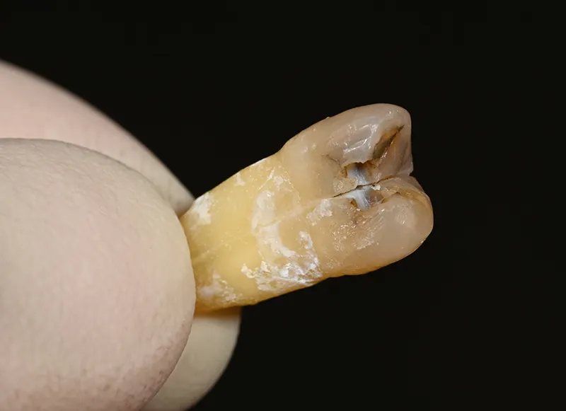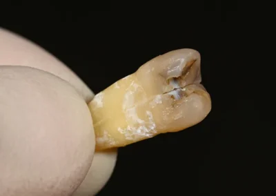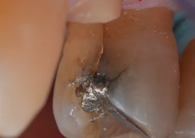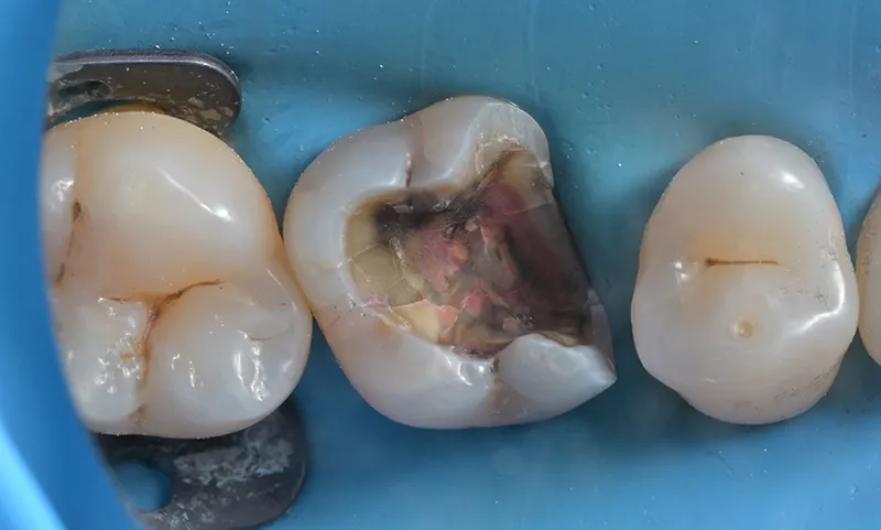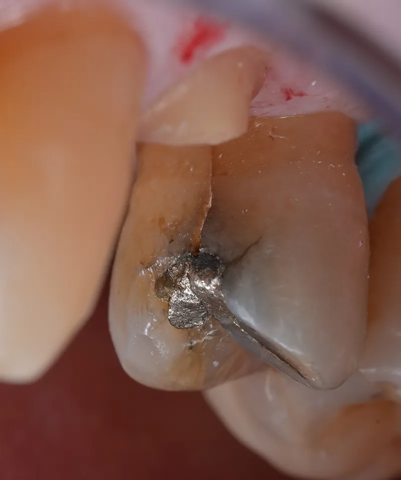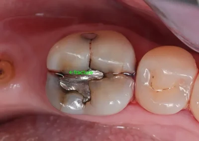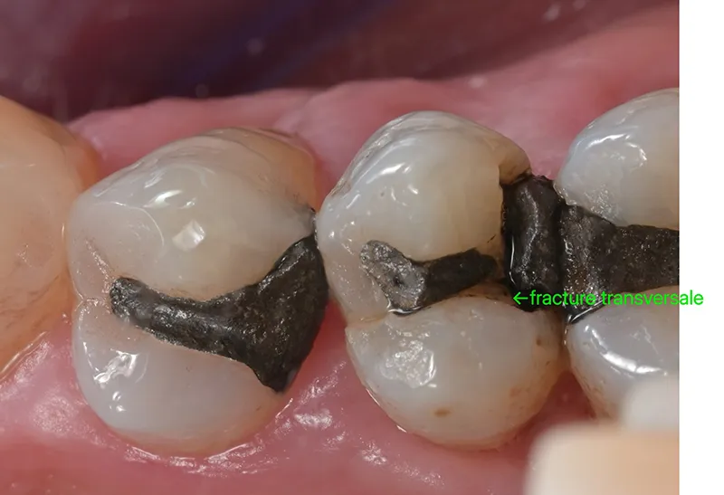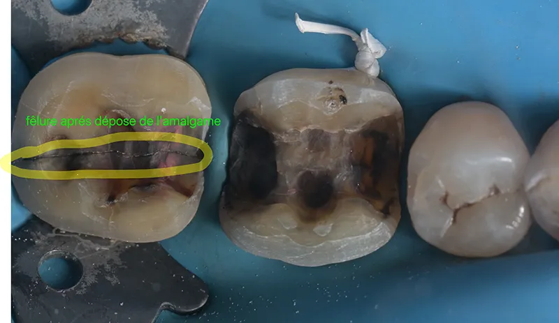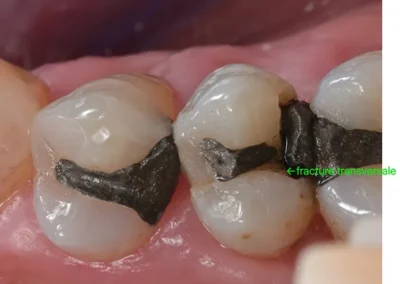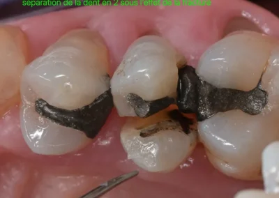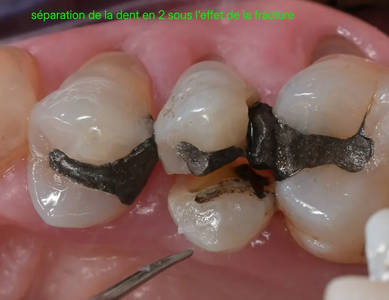 Cela permet l’infiltration bactérienne, affaiblit les bords de la dent, et favorise les fractures soit partielles ( la dent sera conservable moyennant un soin ) soit totale de la dent ( la totalité de la dent, racine et couronne , doit être remplacée)